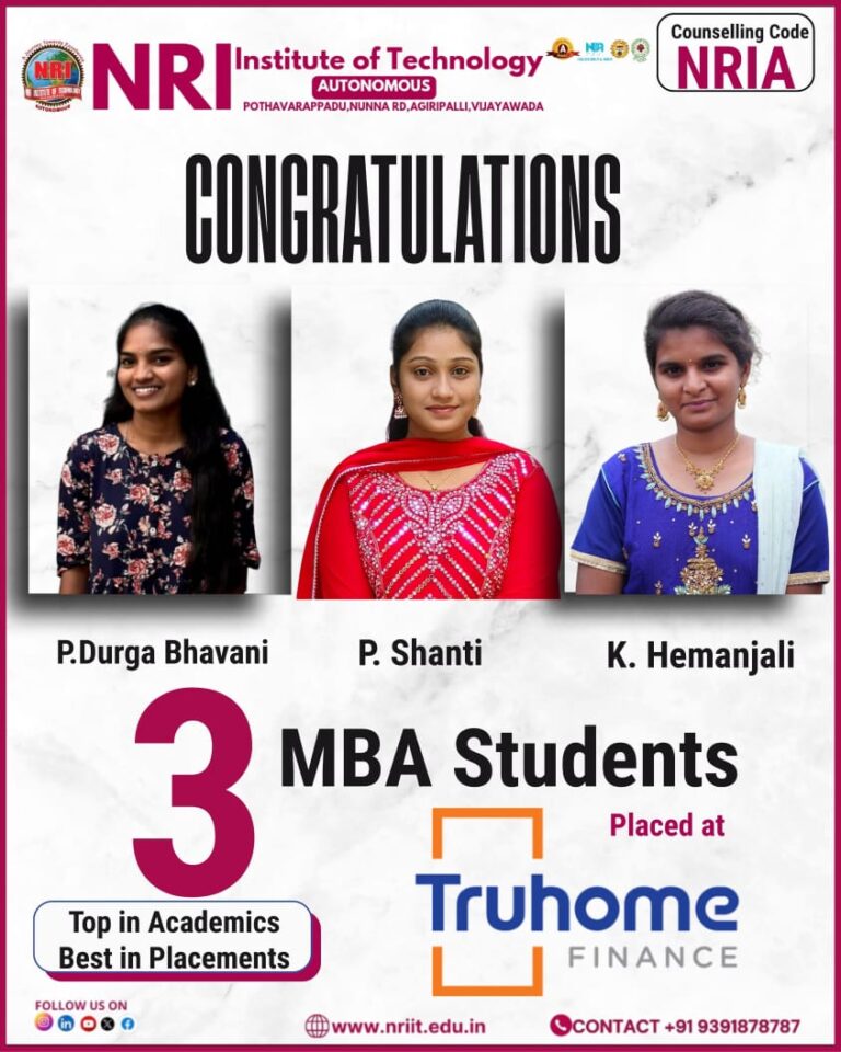 NRIIT MBA Students Secure Placements at Truhome Finance NRI Institute of Technology proudly...