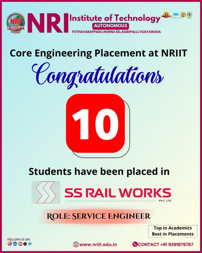 A Proud Moment for NRIIT: 10 Core Engineering Students Placed at SS Rail works Pvt Ltd